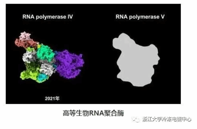 Pol IV和Pol V作为真核生物的第四个和第五个多亚基RNA聚合酶,其基因转录区域、转录起始、延伸和终止机制、转录调控方式均和Pol I、 Pol II和Pol III有较大区别。Pol IV转录的独特之处在于, Pol IV能够与RDR2形成复合物,直接以双链的基因组DNA为模板催化dsRNA的合成。虽然植物Pol IV和Pol V于2005年被发现,然而其三维结构仍然未被报导,大大阻碍了Pol IV和Pol V的进一步深入研究。