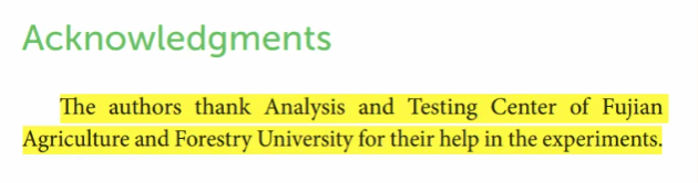 校内用户使用中心仪器设备获得的测试数据,论文中标注仪器型号,且论文的第一单位是福建农林大学,并在论文致谢中标注有“致谢福建农林大学分析测试中心(Instrumental Analysis Center of Fujian Agriculture and Forestry University )”字样,或文章署名中有中心工程师,根据所发表论文期刊水平,中心给予不同的测试费奖励。