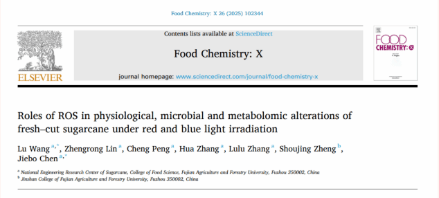 2025年3月,我校陈杰博老师团队在《 Food Chemistry: X 》期刊上发表题为“ Roles of ROS in physiological, microbial and metabolomic alterations of fresh–cut sugarcane under red and blue light irradiation ”的研究论文,为鲜切甘蔗保藏提供了重要科学依据。
