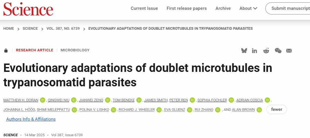 题目: Evolutionary adaptations of doublet microtubules in trypanosomatid parasites